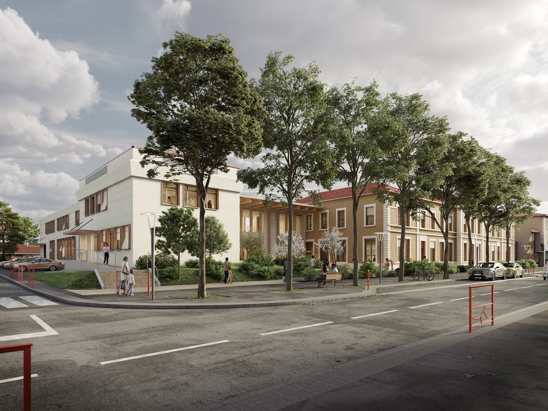Le groupe scolaire de la commune d’Ampuis, au vu de l'évolution démographique, a besoin de restructurer son groupe scolaire vieillissant ne répondant plus aux besoins. Les trois bâtiments construits respectivement en 1900, 1970 et 1990 nécessitent également une rénovation énergétique complète. L’aile 1900 sera réhabilitée complètement pour accueillir les locaux de l’administration, une école de musique municipale, la bibliothèque municipale mutualisée avec la BCD, ainsi que des locaux pour organiser des réunion/expositions. L’ancienne école maternelle 1990 sera démolie car ne répondant absolument pas aux possibilités de rénovation, une nouvelle école sera construite. Enfin, le bâtiment 1970 sera dédoublé et préservé au maximum pour accueillir plus de classes élémentaires, un nouveau restaurant scolaire pour le site, ainsi que l’ALSH. Les extensions et les rénovations utiliseront au maximum des matériaux et isolants biosourcés avec au cœur des modifications apportées l’évolutivité, l’adaptabilité, le confort et la rationalité.